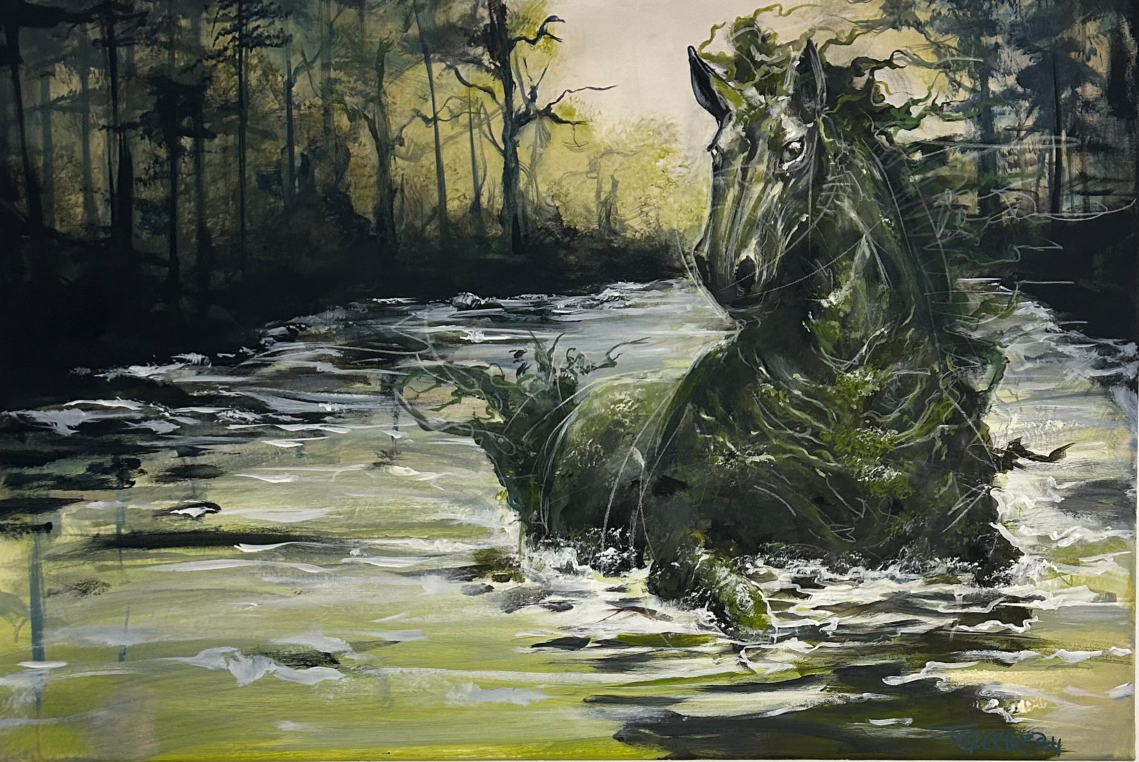560,00 € Kelpie Menge In den Warenkorb Kategorien: Originale, Surreal, Tiere Schlagwörter: 2024, Acryl Beschreibung Beschreibung 60×90 cm Acryl auf Leinwand Das Kelpie (Wasserpferd), ein Wesen aus dem Harry Potter Universum. Ähnliche Produkte Krötilde 620,00 € In den Warenkorb Eins! 860,00 € In den Warenkorb Flug der Kraniche 1.150,00 € In den Warenkorb Elster 750,00 € In den Warenkorb